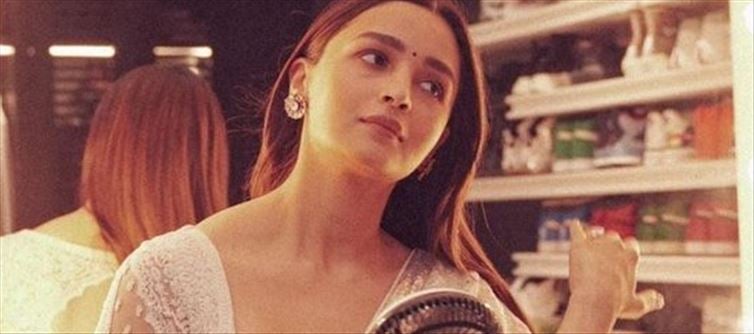 Recently, alia shared two pictures from her instagram account, in which she is looking very beautiful in her white saree. In the pictures, alia is holding a small fan in one hand. However, it's her walk-in closet behind her that caught our attention. As can be seen in the photos, the closet of her house is decorated in classic white and brown tones and has a large mirror with lots of spotlights and a dressing table. However, the shoe-display cabinet in the background of Alia's pictures caught everyone's attention.