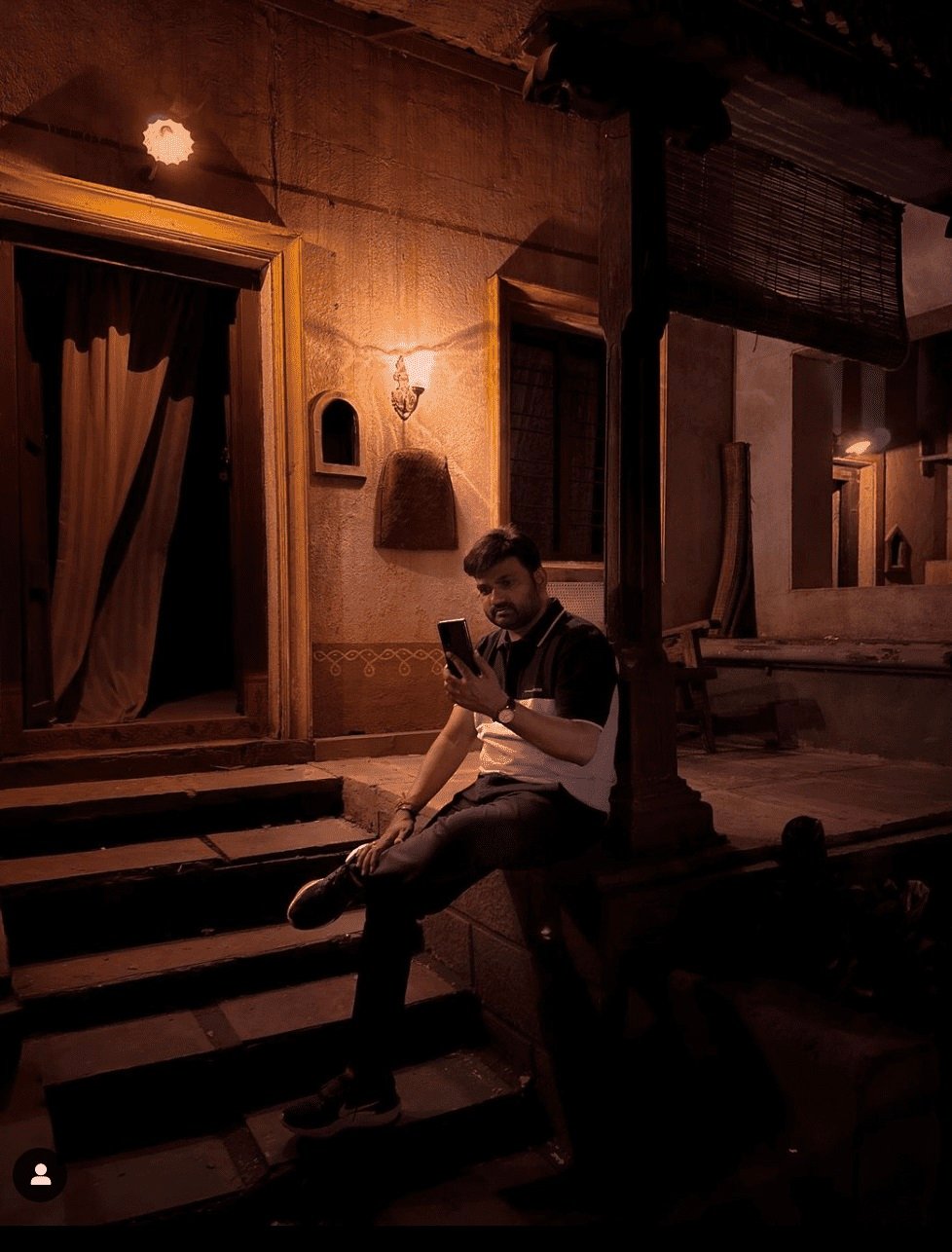 social media page, he posted a photo of himself posing in front of the gorgeously lighted old
