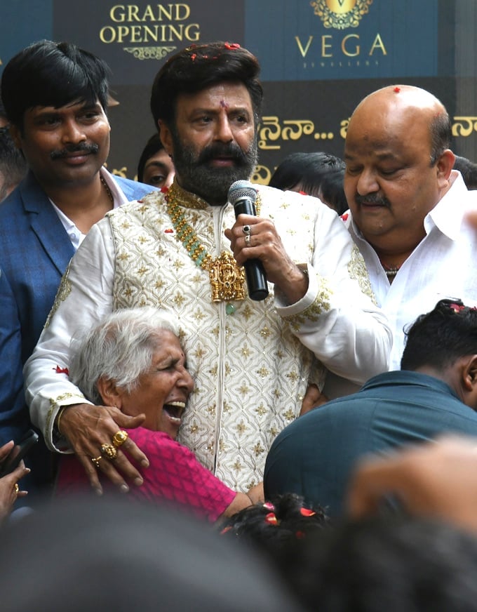 In a lavish event on Wednesday, Nandamuri balakrishna opened a jewellery shop in Vijayawada. He has been appointed as the brand ambassador for VegaSri gold and Diamonds and Vega Jewelers. balayya opened a new showroom on Nandamuri Road in Vijayawada. On social media, a few images from the event are being shared. A picture shows an old woman crying with joy while warmly hugging Balakrishna. She seemed to be showing him her maternal love and didn't want to let him go.
