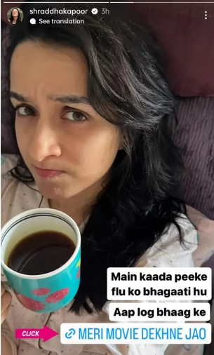In that way, Shraddha, who is currently on full rest due to flu, has shared what food she is eating at this time. Accordingly, Shraddha shared a photo of her drinking herbal tea called 'Katha'. Katha is a homemade mixture of spices and herbs. It generally helps in warding off colds, coughs, and fevers. In this case, Shraddha has posted to show support to those suffering from flu by drinking 'Katha' and watching her film 'Tu Jhoothi Main Makkaar'.