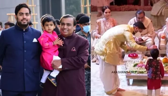 Recently, a video of mukesh Ambani's grandson and akash Ambani's son prithvi surfaced on social media, in which he is seen doing a cute act.