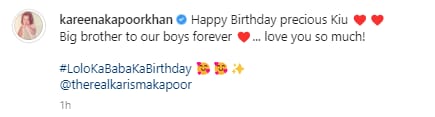 Apart from being a busy actress, kareena kapoor is also an active social media user who never forgets to wish her family and friends a special day. To wish her nephew and Karishma Kapoor's darling Kian her birthday, the actress has shared a lovely photo from her instagram account, in which Kian is seen with her cousin Taimur ali Khan. The lovely bonding between the two can be seen in the photo.