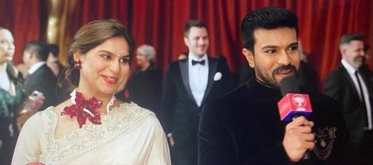 తన భార్యకు ఆరోనెల అని చెప్పడం.. తన బిడ్డ త్వరలోనే రాబోతున్నాడు అంటూ చెప్పడం.. ఇక అంతేకాకుండా ఉపాసన మెడలో ధరించిన నెక్లెస్ గురించి కూడా మీడియా అడగడం.. దాని గురించి రామ్ చరణ్ చెప్పడంతో ఇప్పుడు చెర్రీ కామెంట్స్ వైరల్ అవుతున్నాయి. ఆస్కార్ వేడుకలు ఎలా అనిపిస్తున్నాయి? నర్వస్ గా ఫీల్ అవుతున్నారా? అని హాలీవుడ్ మీడియా అడిగితే.. అలాంటిదేమీ లేదని అన్నాడు చరణ్. ఉపాసన మాత్రం కాస్త నెర్వస్ గానే ఫీల్ అవుతున్నట్టు చెప్పింది. ఇదే క్రమంలో ఉపాసన వేసుకున్న నెక్లెస్ గురించి సదరు రిపోర్టర్ మాట్లాడారు. నాలుగు వందల రూబీస్ విలువ కలిగిన నెక్లెస్ ధరించారు అంటూ ఉపాసన గురించి అన్నాడు.