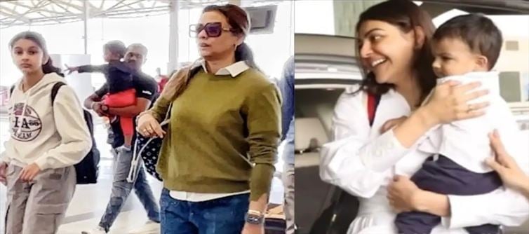 But, Mahesh Babu's wife namrata shirodkar and their child Sitara were photographed at the airport in hyderabad today. Sitara looked cozy in her cargo trousers and hoodie, while namrata wore a classic ensemble of a white crisp shirt with a sweater top and blue jeans. namrata shirodkar recently stated in an exclusive interview that she always makes sure her children Sitara and gautam have a humble and grounded demeanour.
