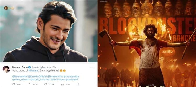తాజాగా మహేష్ బాబు దసరా సినిమా పైన ప్రశంసలు కురిపించారు. నాచురల్ స్టార్ నాని, కీర్తి సురేష్ జంటగా శ్రీకాంత్ ఓదెల డైరెక్షన్లో వచ్చిన దసరా సినిమా పాన్ ఇండియాలో విడుదల అయింది. ఈ సినిమా పాజిటివ్ టాక్ తోనే దూసుకుపోతుంది. స్టార్ హీరో నాని టైర్ 2 హీరో నుంచి టైర్ వన్ హీరోగా నిలబెట్టిన సినిమా అని ప్రేక్షకులైతే తెలియజేస్తున్నారు. దసరా సినిమా పైన మహేష్ బాబు ఇచ్చిన రివ్యూ మరింత హైప్ ని పెంచేలా కనిపిస్తోంది.