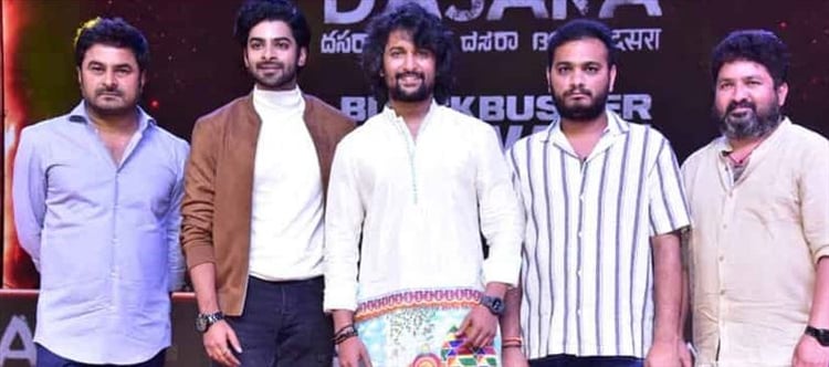 Nani revealed that srikanth had suggested holding the gathering in Karimnagar. He also remembered what the co-director had been informed by the director before they started shooting the movie. With his co-director, srikanth said, "For an actor like nani, we should see a 100 Cr gross poster, and his words came true with Dasara."