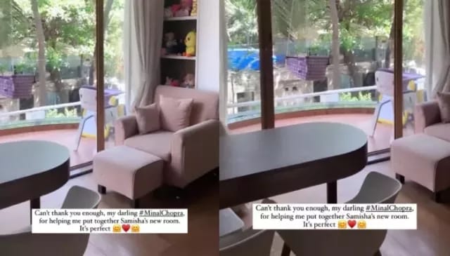 We can also see a chair placed next to a shelf filled with soft toys and children's books. While the pink-colored interiors of the room showcase Sameesha's love for everything pink. There is also a nice view outside the room. The balcony attached to the room has a chair swing and a seating chair for the little munchkin to enjoy their playtime. Sharing the video, shilpa wrote, "Can't thank you enough, my love #MinalChopra, for helping me put together Samisha's new room. It's just perfect."