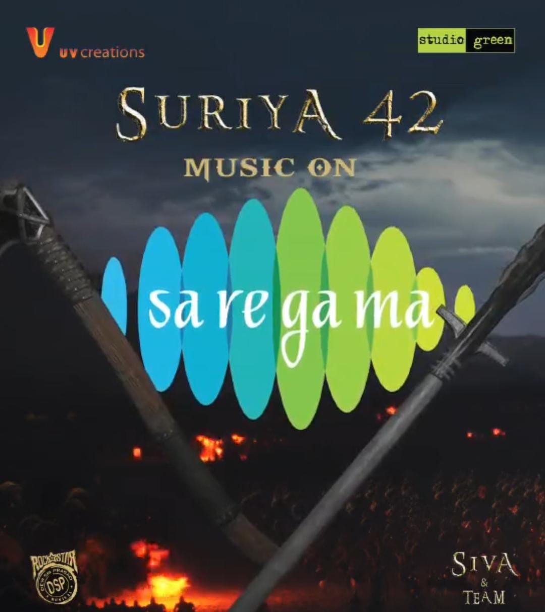 ఈ మూవీ కి ఇప్పటి వరకు ఈ మూవీ యూనిట్ టైటిల్ ను ఫిక్స్ చేయలేదు. దానితో ఈ మూవీ సూర్య కెరియర్ లో 42 వ మూవీ గా రూపొందుతున్న నేపథ్యం లో ఈ మూవీ షూటింగ్ ను సూర్య 42 అనే టైటిల్ తో ఈ మూవీ యూనిట్ పూర్తి చేస్తూ వస్తుంది. ఈ మూవీ ని 10 భాషలలో విడుదల చేయనున్నారు. ఇది ఇలా ఉంటే తాజాగా ఈ మూవీ యూనిట్ ఈ సినిమాకు సంబంధించిన ఒక కీలకమైన అప్డేట్ ను ప్రకటించింది. ఈ సినిమా యొక్క మ్యూజిక్ హక్కులను "సరిగమ" సంస్థ దక్కించుకున్నట్లు అధికారికంగా ప్రకటించింది. ఈ మూవీ కి రాక్ స్టార్ దేవి శ్రీ ప్రసాద్ సంగీతం అందిస్తున్నాడు.