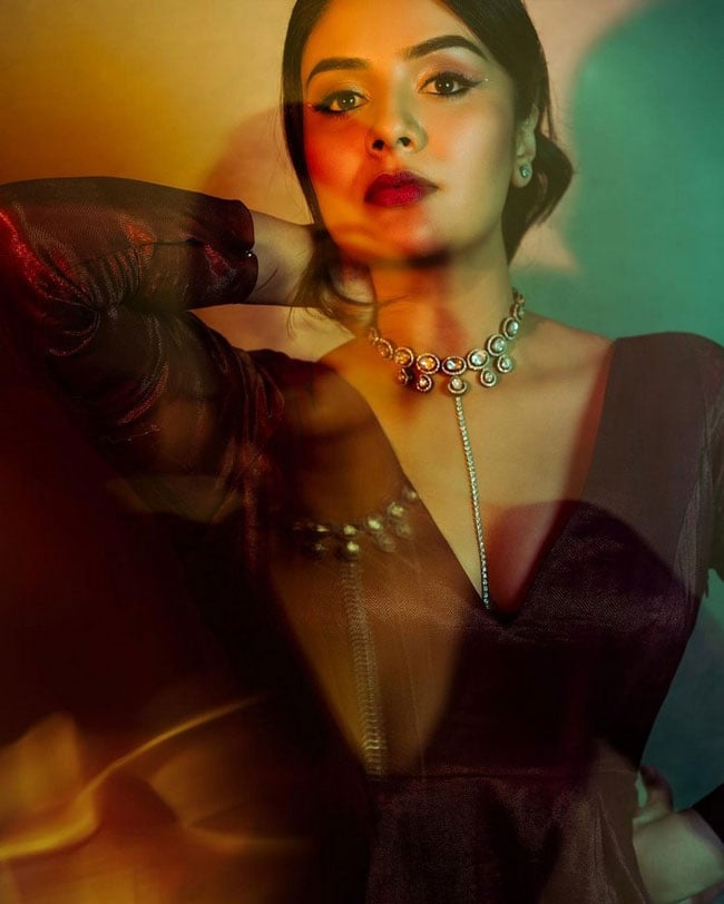 బుల్లితెరపై యాంకర్ గా పేరు పొందింది యాంకర్ శ్రీముఖి.. ఎప్పటికప్పుడు వార్తలు నిలుస్తూనే ఉంటుంది ఈ అమ్మడు.. హీరోయిన్గా ట్రై చేసిన పెద్దగా సక్సెస్ కాలేక పోయింది. సోషల్ మీడియాలో మాత్రం తన అందాల ఆరబోతతో హీరోయిన్ రేంజ్ లో మంచి పాపులారిటీ సంపాదించుకుంది. ఎప్పటికప్పుడు సోషల్ మీడియాలో హాట్ ఫోటోలను సైతం షేర్ చేస్తూ ఉంటుంది. శ్రీముఖి అందంతోపాటు ఆకట్టుకొనే ఫిజిక్ తో అందరిని ఆకట్టుకుంటోంది. సోషల్ మీడియా లో సైతం పెద్ద ఎత్తున అభిమానులు ఫ్యాన్ ఫాలోయింగ్ భారీగా సంపాదించింది.శ్రీమఖి ని ఫాలో అయ్యే వారిని ఎంటర్టైన్ చేసేందుకు క్రమం తప్పకుండా సోషల్ మీడియాలో పలు రకాల ఫోటోలు షేర్ చేస్తూ ఉంటుంది. తాజాగా ఇలాంటి షో తో మైమర పిస్తూ తన అందాలతో మెరుపులు మెరూపిస్తోంది. ముఖ్యంగా కళ్ళు బయ్యర్లు కమ్మే విధంగా ఈ అమ్మడు ఫోటోలు అందాలతో కనిపిస్తోంది. సాయిలు అందాల ఆరబోత చేస్తూ ఉన్న ఇమే చిరంజీవి వంటి స్టార్ హీరోల చిత్రాలలో కూడా ఈ కీలకమైన పాత్రలో నటిస్తోంది. రాజాగా తన ఎద అందాలతో మత్తెక్కించే చూపులతో శ్రీముఖి అందాలు చూపిస్తూ కుర్రకారులను టెంట్ చేస్తోంది.ముఖ్యంగా ఈమె మేడలో ఉండే నక్లెస్ తన ఎద భాగాలను తాకుతూ చాలా స్టైలిష్ గా  కనిపిస్తోంది. శ్రీముఖి మత్తు కళ్ళకు మాయ చేసే విధంగా కనిపిస్తోంది. శ్రీముఖి సినిమాల విషయానికి వస్తే.. భోళా శంకర్ సినిమాలో ఈమె కూడా నటించబోతున్నట్లు వార్తలు వినిపిస్తున్నాయి. చిరంజీవితో కలిసి శ్రీముఖి.. ఖుషి చిత్రంలోని నడుము సన్నివేశాన్ని రీ క్రియేట్ చేయబోతున్నట్లుగా వార్తలు వినిపిస్తున్నాయి. ఏది ఏమైనా శ్రీముఖి యాంకర్ గా మంచి పాపులారిటీ సంపాదించింది. శ్రీముఖి బుల్లితెర రాములమ్మ పిలుస్తూ ఉంటారు అభిమానులు. గతంలో హీరోయిన్గా నటించిన పెద్దగా సక్సెస్ కాలేకపోవడంతో తిరిగి యాంకర్ గాని మళ్లీ అవకాశాలను అందుకుంది శ్రీముఖి.