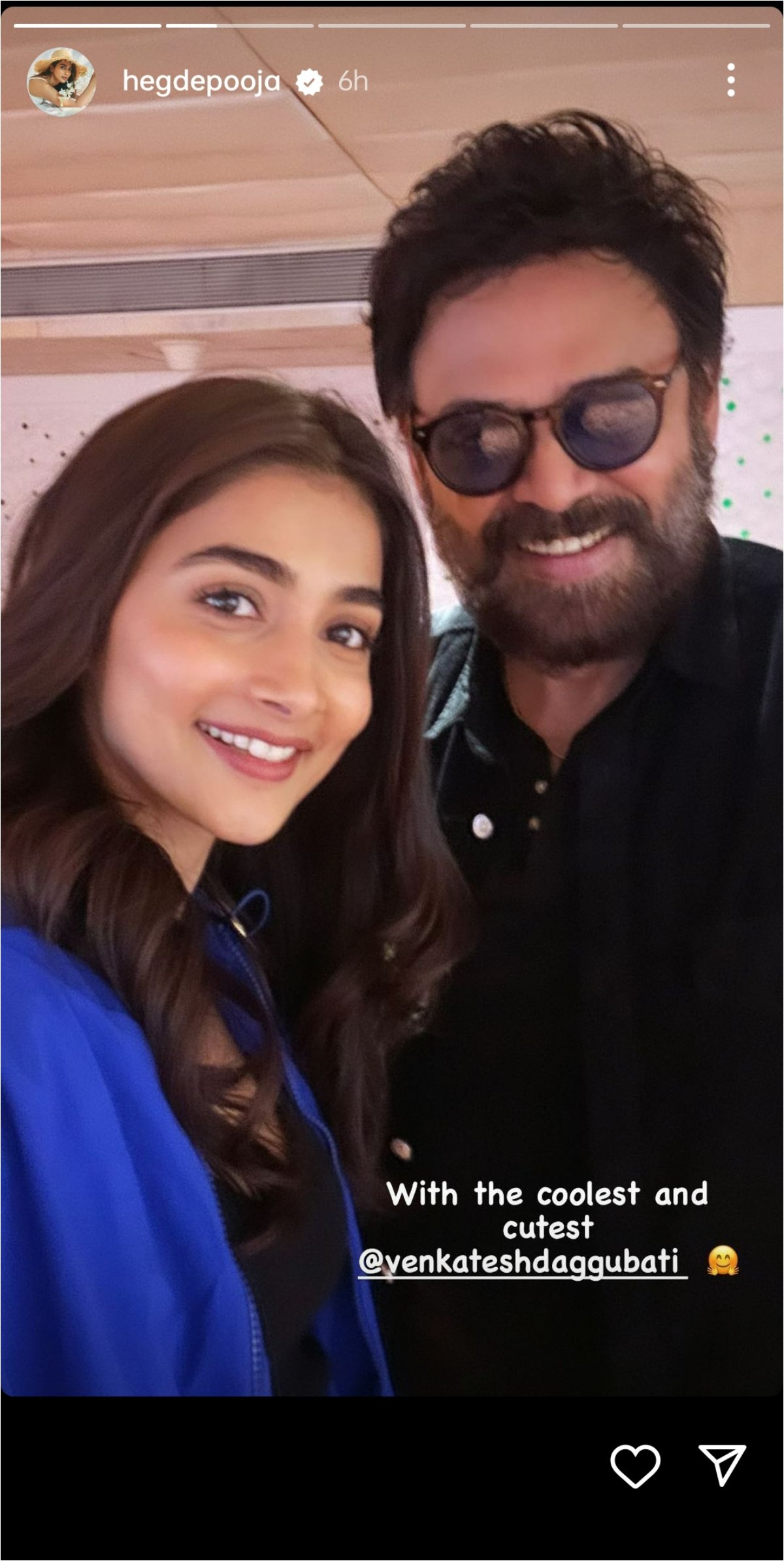 The actress posted a photo of herself with the veteran actor on instagram along with the caption, "With the coolest and cutest @Venkateshdaggubati." The performers are portraying a family from hyderabad who meet "Bhaijaan," a guy from mumbai who falls in love with Pooja's character. salman Khan's attempts to persuade her family, which is headed by her older brother played by Venkatesh, are the basis for the remainder of the movie. The telugu film industry has seen a lot of pooja Hedge, who has appeared alongside actors like Allu Arjun, Mahesh Babu, and ram Charan.
