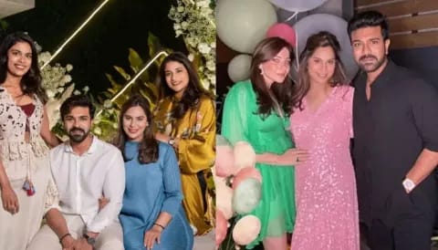 On 23 april 2023, ram Charan's sister and her family hosted a baby shower for the soon-to-be mother, upasana Komineni. It was also attended by Allu Arjun, Sania Mirza, kanika Kapoor, and their other close friends and family members. upasana wore a pink color dress for the event and was seen flaunting her full-grown baby bump.
