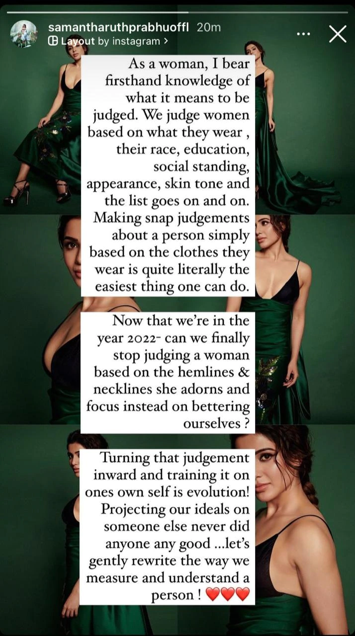 It's so strange that women's dress still attracts criticism and judgement in the twenty-first century. samantha was previously made fun of for wearing a dress with a plunging V-neckline, but she didn't back down despite looking stunning. As a result, she wrote a lengthy letter that began, "As a woman, I bear firsthand knowledge of what it means to be judged."