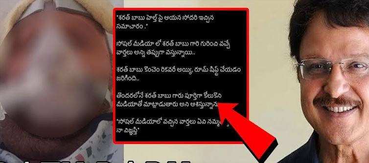 The sister of actor sarath babu officially confirmed that the reports of his death were untrue. However, there were widespread rumours that sarath kumar had passed away on several social media platforms. However, his sister clarified that those are wholly untrue and that he only experienced a hospital room change. She stated that sarath babu was receiving treatment at the time and expressed her desire for a speedy recovery.