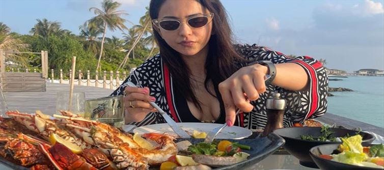 ఈ మధ్య తరచూ బాలీవుడ్ లోనే పలు సినిమాలలో నటిస్తూ బిజీ హీరోయిన్గా మారిపోయింది. ఈ ముద్దుగుమ్మ సోషల్ మీడియాలో కూడా తరచూ గ్లామర్ షో తో కుర్రకారులకు పిచ్చెక్కించే అందాలతో మైమరపిస్తూ ఉంటుంది. తన గ్లామర్ ఫోటోలతో ప్రతి రోజు అందరిని ఆకట్టుకుంటూ ఉంటుంది. తాజాగా ఈ ముద్దుగుమ్మ instagram వేదికగా ఒక పోస్ట్ ని షేర్ చేసింది ఇందులో రకుల్ చాలా అందంగా కనిపిస్తోంది. బీచ్ పక్కన ఒక రెస్టారెంట్ లో ఫుడ్ ఐటమ్స్ తింటూ కనిపిస్తున్నా రకుల్ తన అందాల ఆరబోతను కూడా అలాగే చూపిస్తుంది.