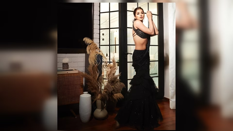 We notice that she really understands how to give them a contemporary twist. Delicate black sequin embroidery is used throughout the saree to give it an edge that makes it the ideal choice for any event. The look gained intensity from the tiny ruffle accents. That blouse left a lasting impression. The complete design was given more punch with the plunging neckline and backless detail. This particular element can quickly transform a dull scene into one that is fascinating. She simply required her striking necklace as an accessory to complete her look.