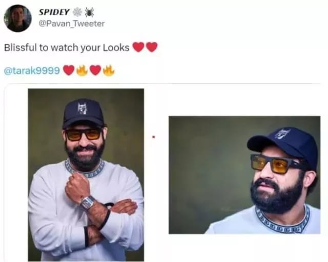 Recently, a fan page of jr ntr shared two pictures of jr ntr on their twitter handle. In the pictures, the actor can be seen wearing a white T-shirt from the famous brand 'Dolce and Gabbana'. He styled his outfit with a black cap, sunglasses, and a wristwatch