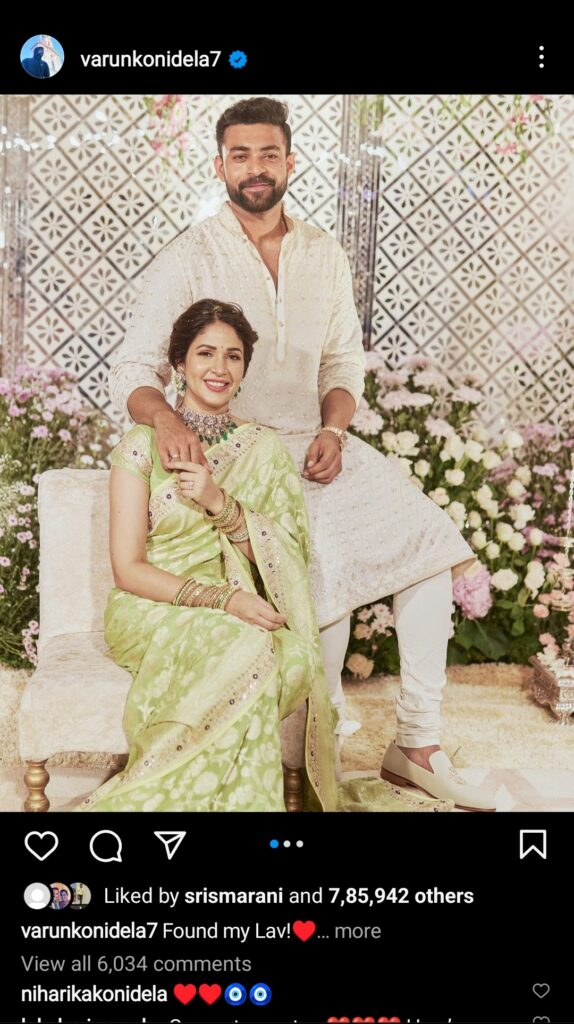 On friday night, varun Tej and lavanya tripathi exchanged vows in a private ceremony. The couple was married in naga Babu's home in manikonda in front of all of Varun's mega-family relatives, their closest friends, and other family members.