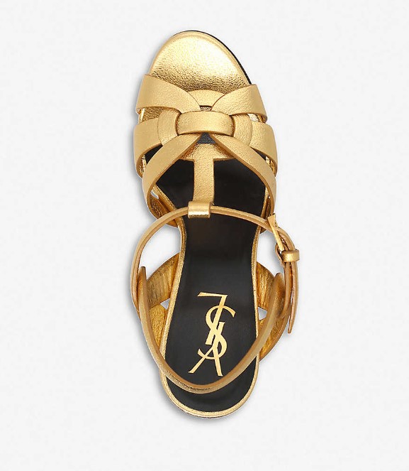 Nita Ambani paired her traditional salwar suit with her all-time favorite YSL tribute heels. The leather-heeled sandal in gold color, with open toe featured intertwining straps. It also had stud detailing and a YSL logo. The stunning heels are priced at 950 USD, which is approximately Rs. 78,334.