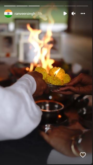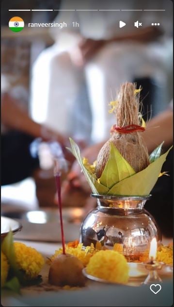 On august 19, 2022, ranveer singh took to his IG stories and shared a series of glimpses from the griha pravesh puja performed at one of his and deepika Padukone's new homes. As per a report in ETimes, the pictures were from their new house in the Satirje area of Alibaug, designed by celebrity interior designer, Vinita Chaitanya. Reportedly, the price tag of the luxurious sea-facing bungalow is Rs. 22 crores and is spread across 2.25 acres. The 5BHK duplex bungalow is located 10 minutes from Kihim beach in a built-up area of around 18,000 square feet. Check out the beautiful glimpses shared by the actor: