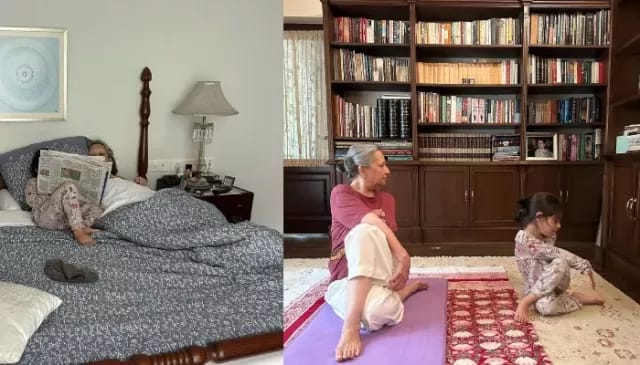 On 13 june 2023, ali KHAN' target='_blank' title='soha ali khan-Latest Updates, Photos, Videos are a click away, CLICK NOW'>soha ali khan shared a series of beautiful pictures of her daughter Inaaya and mother sharmila tagore from her instagram account, in which each photo is very special. In these, we can see Inaaya talking to her grandmother, doing yoga with her, reading newspapers, and walking in the garden.