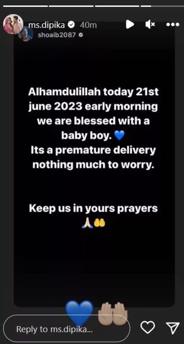 In fact, on june 21, 2023, shoaib ibrahim wrote in a note on his insta Story, “Alhamdulillah today morning of june 21, 2023, we have been blessed with a baby boy. It is a premature delivery, but nothing to worry about. Keep us in your prayers. Please tell that deepika was in her third trimester and her delivery date was in July. The couple announced their pregnancy in january 2023 after their first trimester.