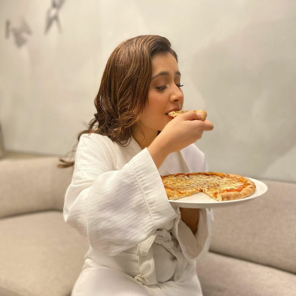 Raashi, however, realises the need of keeping a healthy figure through exercise and strenuous gym routines rather than only depending on diets. Many people who aspire to live a balanced lifestyle look up to her as an inspiration. Raashi recently posted some breathtaking images of herself enjoying a wonderful pizza while sporting a chic bathrobe. The actress's fusion of food and glitz was just stunning; she seemed genuinely delectable!