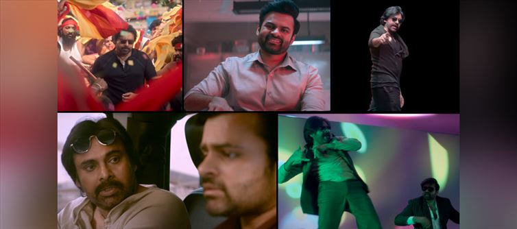 The entire trailer exudes Pawan Kalyan's retro fashion sense and swag. sai dharam tej appears in a few brief flashes, but pawan kalyan completely dominates the teaser. To captivate the fans, samuthirakani used Pawan Kalyan's mannerisms from the Thammudu, Badri, and jalsa eras, and it appears that it was successful.