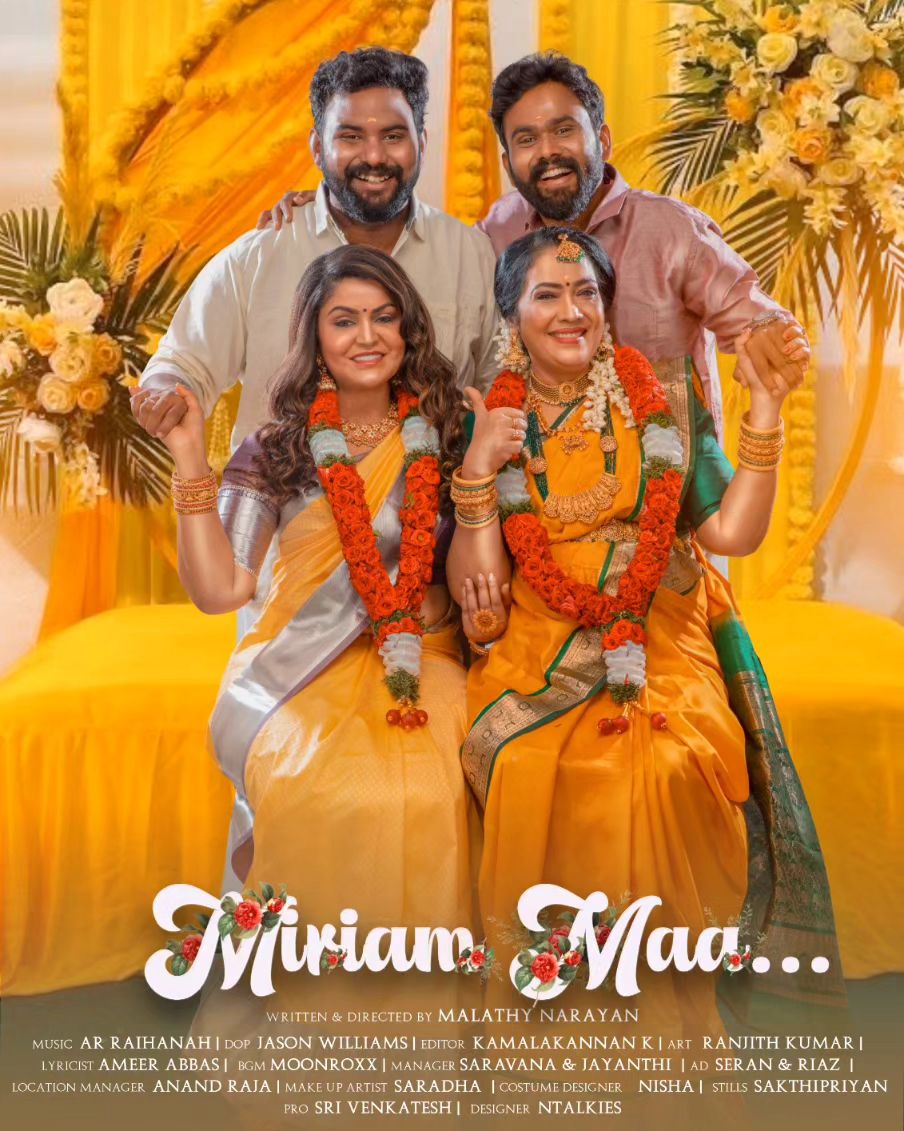 Rekha is shown on the poster alongside Ashiq, sneha Kumar, and Ezhil. She is wearing a vibrant yellow saree with a garland around her neck. Malathy Narayan, a first-time director and physician by training, gets behind the camera for the movie Miriamma. A 50-year-old woman uses IVF to become pregnant in the narrative Miriammaa. The movie makes light of the factors that caused her to choose what she did.
