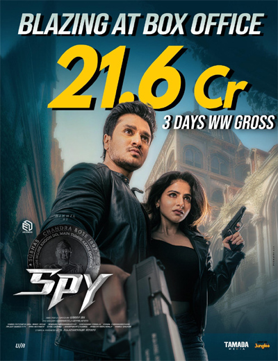The national thriller Spy, which debuted on thursday and stars Nikhil Siddhartha, Iswarya Menon, and Sanya Thakur in the major roles, is doing well at the box office. Award-winning editor Garry BH is the film's director. The movie has reportedly made a staggering Rs. 21.6 crores in just 3 days, according to the producers. Trade analysts predict that the movie will make considerably more money on Sunday.