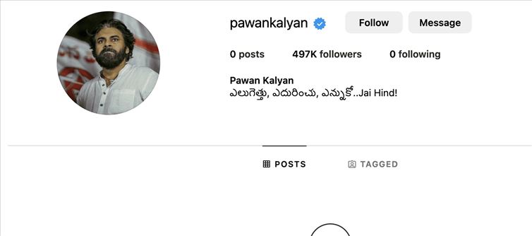 As was previously reported, bollywood superstar pawan kalyan just made his instagram debut. He has over 103K followers despite having not yet posted any posts. The forum will likely be used by pawan kalyan to express his political opinions and give movie news. His social media profile pictures are identical to his instagram profile image. "Yelugetthu, Yedirinchu, Yennuko.. jai Hindi!" is written in his bio.