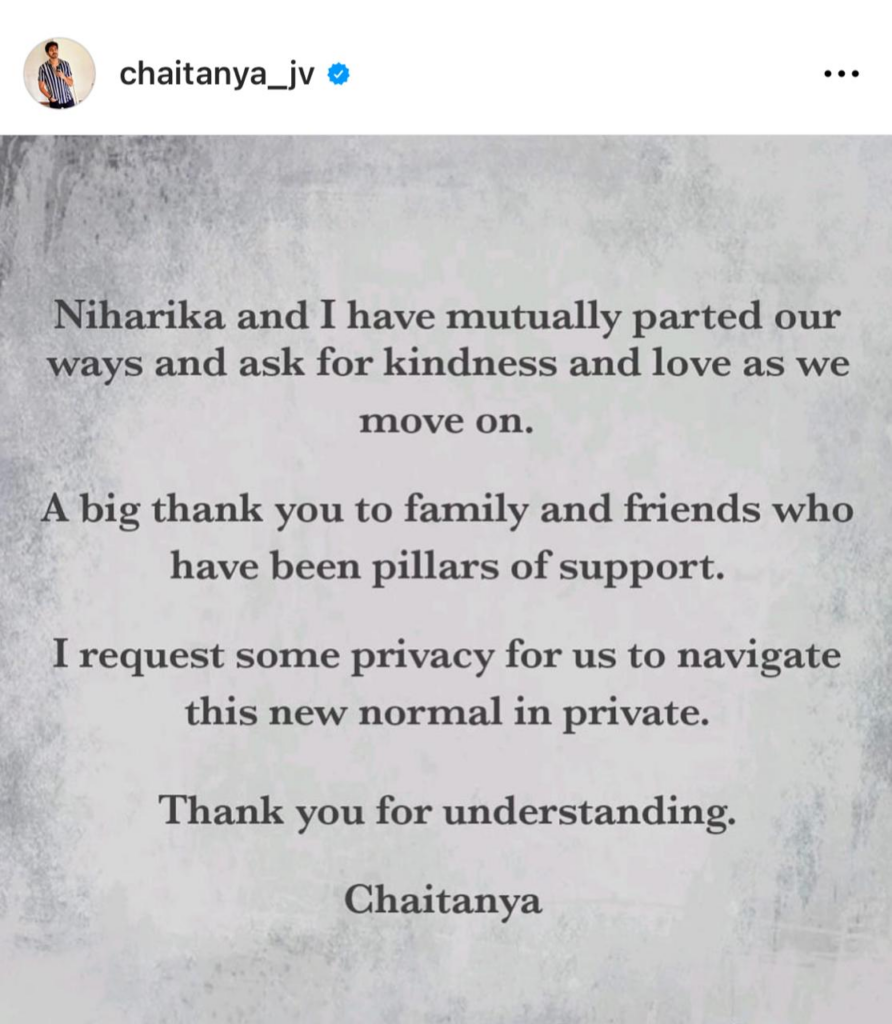 A Family court in hyderabad recently granted a divorce to mega daughter konidela Niharika and her husband JV chaitanya, as we have already reported. The actress kept mute the other day despite the news getting out, but she ultimately made the decision to make a statement a la hrithik roshan and samantha Ruth Prabhu. The actress announced on her social media pages that she and her spouse are divorcing peacefully and urged readers to be kind and understanding during this difficult time.