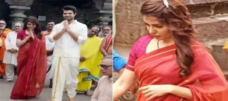 ఇక అందుకు సంబంధించిన ఒక వీడియో ఇప్పుడు సోషల్ మీడియా వేదికగా తెగ వైరల్ అవుతుంది. కాగా ఆ వీడియోలో సమంత రెడ్ కలర్ చీరలో అచ్చం పెళ్ళికూతురు లాగా కనిపిస్తోంది. ఇక ఆ వీడియోలో కుటుంబ సభ్యులంతా కలిసి యాగం చేస్తున్నారు. సమంత రెడ్ కలర్ చీరలో విజయ్ పంచ కట్టులో కనిపిస్తున్నారు. సాంప్రదాయ దుస్తుల్లో వీరిద్దరూ నమస్కారం పెట్టారు. మురళీ శర్మ సచిన్ కెడేకర్ సైతం అందులో కనిపించారు. ఈ క్రమంలోనే ఈ సినిమాలో వారిద్దరూ భార్య భర్తలు గా కనిపించారు. అంతేకాదు సమంత సైతం సెట్స్ నుండి ఒక సెల్ఫీ తీసుకొని తన సోషల్ మీడియా వేదికగా షేర్ చేయడం జరిగింది. అంతేకాదు ఇందులో సమంత తన మెడలో నల్లపూసలైన సైతం వేసుకుంది. కాగా సెప్టెంబర్ 1న ఈ సినిమా విడుదల కానుంది..!!
