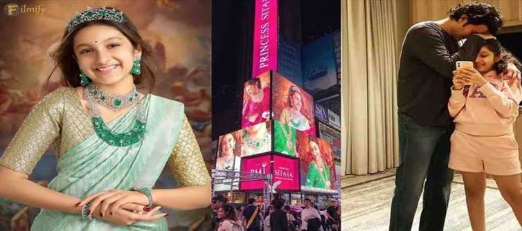 ఇది ఇలా ఉంటే ఈ ముద్దుగుమ్మ తాజాగా ఒక యాడ్ షూటింగ్ చేయడంతో ప్రస్తుతం అందుకు సంబంధించిన ఫోటోలు వీడియోలు సోషల్ మీడియాలో వైరల్ అవుతున్నాయి. ఆ వీడియోలో చూసిన ఘట్టమనేని అభిమానులు ఆనందం వ్యక్తం చేయడంతో పాటు ఆ ఫోటోలను సోషల్ మీడియాలో తెగ వైరల్ చేస్తున్నారు. అలాగే చిన్న వయసులో యాడ్ షూట్ లో పాల్గొన్న స్టార్ కిడ్ గా ఘనత సాధించింది. ఇప్పుడు రెమ్యునరేషన్ విషయంలోనూ ఎక్కడికో వెళ్లిపోయినట్లు తెలిస్తోంది. చేసింది జ్యూవెల్లరీ యాడ్ అయితేనే సితారకు పెద్ద మొత్తమే ఇచ్చారని తెలుస్తోంది. సూపర్స్టార్ మహేశ్ ఏడాది లేదా ఏడాదిన్నరకు ఒక సినిమా చేస్తూ ప్రేక్షకుల్ని అలరిస్తుంటాడు. కానీ యాడ్స్, ప్రమోషన్స్ రూపంలో మరోవైపు నుంచి గట్టిగానే సంపాదిస్తున్నాడు. పాన్ మసాలా దగ్గర నుంచి సోప్ వరకు ప్రతిదానిలోనూ యాక్ట్ చేస్తుంటాడు. కోట్లకు కోట్లు ఆర్జిస్తుంటాడు. మహేశ్ ఫ్యామిలీ అంతా కలిసి గతంలో ఒక యాడ్ లో కనిపించారు. ఆ తర్వాత కూతురు సితారకు పలు ఆఫర్స్ వచ్చాయట. కానీ ఎందుకో మహేశ్ వాటిని ఒప్పుకోలేదు. ఇప్పుడు మాత్రం జ్యూవెల్లరీ యాడ్ లో సితార నటించడానికి గ్రీన్ సిగ్నల్ ఇచ్చాడు.కొన్నాళ్ల ముందు ఈ యాడ్ షూట్ జరగ్గా.. ఆ వీడియోని న్యూయార్క్ లోని టైమ్ స్క్వేర్ లో తాజాగా ప్రదర్శించారు. దీన్ని సోషల్ మీడియాలో పోస్ట్ చేసిన మహేశ్ కూతురు ఎదుగుదల చూసి తెగ ఆనంద పడిపోయాడు. చాలా ఆఫర్లకు ఒప్పుకోని మహేశ్ ఇలా ఈ యాడ్ కి ఎలా అంగీకరించాడా అని మీకు డౌట్ రావొచ్చు. అయితే ఇందులో సితార యాక్ట్ చేసినందుకు గానూ ఏకంగా రూ.కోటి ఇచ్చారట. బహుశా మహేశ్ కూడా తన తొలి యాడ్ కోసం కూడా ఇంత తీసుకుని ఉండడు. అందుకే సితార యాడ్ షూట్ కి ఒప్పుకున్నాడేమో? అన్న వార్తలు కూడా జోరుగా వినిపిస్తున్నాయి. మొత్తానికి కేవలం తండ్రి మాత్రమే కాకుండా ఇకపై సితార కూడా యాడ్లు షూటింగ్ చేస్తూ ఈ వయసుకే కోటల్లో సంపాదిస్తుందని చెప్పవచ్చు.