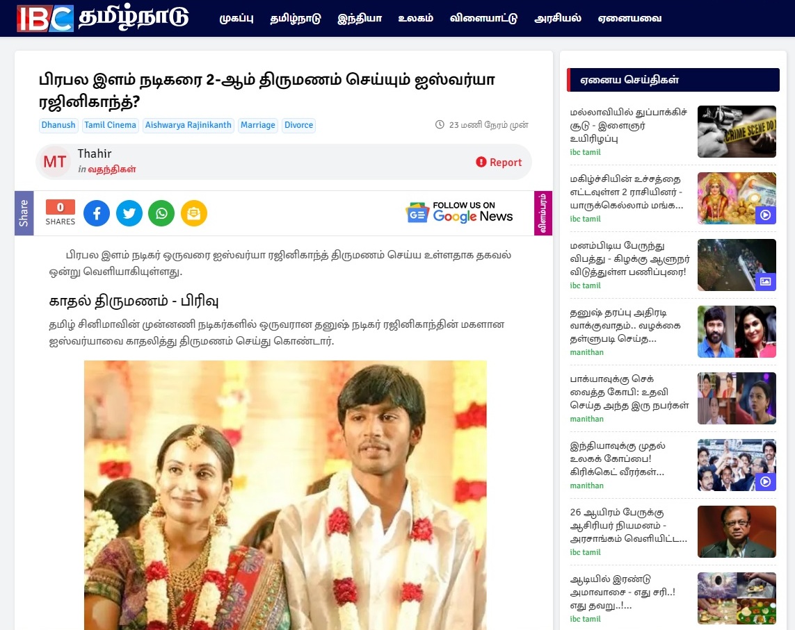 While the two are living apart, fans are eagerly waiting for the two to get back together. Meanwhile, dhanush and aishwarya Rajinikanth are focusing on their careers. Actor dhanush is acting in Captain Miller and aishwarya is directing Lal Salaam. Meanwhile, it is reported that aishwarya Rajinikanth is going to get married for the second time. It is said that aishwarya is in love with the famous young actor and they have decided to get married soon.