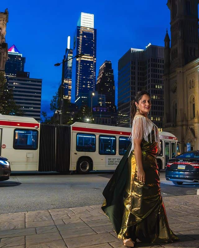 America started the feast of beauty with blatant envy. On unfamiliar streets, wearing knickers. social media is trembling over anasuya Kirak's stance.  Anasuya takes business trips overseas. She is presently in Washington. She posted images from her trip there. Anasuya's glossy appearance gains popularity.  Vimanan, Anasuya's most recent film, has received favourable reviews. However, it was not broadcast for profit. anasuya portrayed a prostitute in the Vimana film. She performed admirably in a challenging position. The ZEE5 OTT platform will stream Vimana.