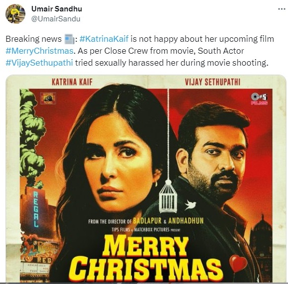 In it, he posted that vijay sethupathi gave private torture to katrina Kaif. vijay sethupathi is not like that for this post, fans are scolding Umar Sandhu not to post unnecessary false information. This twitter celebrity has more than 26K followers and he is still being trusted by a number of people. However, no one reacted or responded so far.