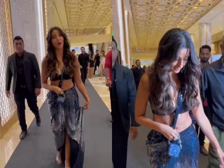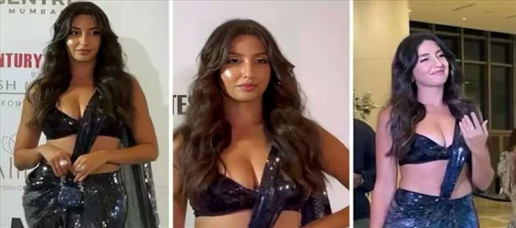 నోరఫతేహి ఈవెంట్ కి బ్లాక్ డిజైనర్ శారీలో హాజరు కాగా ఈమె ధరించిన ఈ సారి చాలా విచిత్రంగా ఉందని చెప్పవచ్చు. కేవలం కొంగు ఉండాలంటే ఉండాలి అన్నట్లుగా చూపిస్తూ ఈమె ధరించిన బ్రా లాంటి బ్లౌజులు తన పరువాలన్నీ చూపిస్తే నడుము తో పాటు నాభి అందాలతో కుర్రకారుల మైండ్ బ్లాక్ చేసే విధంగా కనిపిస్తోంది. ముఖ్యంగా ముందు దాచుకోవడానికి సారీ ఏమీ లేదు కానీ వెనుక మాత్రం చాలా పొడవాటి నేలని ఈడ్చుకుంటూ వచ్చేలా కనిపిస్తోంది ఈ ముద్దుగుమ్మ ఈ డ్రెస్సు చూసిన వారంతా కూడా ఆశ్చర్యపోతున్నారు. అయితే ఈ డ్రెస్సు చూసిన తర్వాత కెమెరామెన్ ఫోటోలు తీయడానికి ఎగబడక అందులో నోరా పత్తేహి డ్రస్సుని పొరపాటున ఒకరు వెనుక భాగంలో చీరని తొక్కడం జరిగింది దీంతో ముందుకు పడబోయిన నోరఫతేహి వెంటనే జాగ్రత్త పడింది.