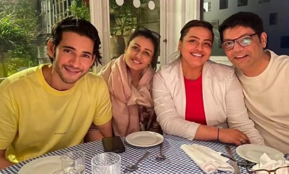 It is known that the latest schedule of Superstar Mahesh Babu's guntur Karam movie has been completed recently. As soon as the schedule was completed, mahesh babu went on a trip to london with his family. Spending fun time with family there. Recently, this photo related to Mahesh Babu's london trip is going viral on social media. mahesh babu made noise in a restaurant with his family. Fans are commenting that mahesh babu is looking cute and cool in this photo. Mahesh Babu is looking more handsome and attractive as he gets older. Some fans are commenting that mahesh babu is so handsome because he spends a lot of time in a peaceful environment abroad. After all, mahesh babu, who took a short break from guntur Karam, is currently buzzing in London. Soon after coming from there, there is a possibility of rejoining the shooting of the guntur Karam movie. It is known that the movie guntur Karam is going to come before the audience as a gift for Sankranthi next year. It is also known that there is a lot of interest in the movie being directed by trivikram srinivas among the fans of mahesh babu as well as the telugu movie audience.
