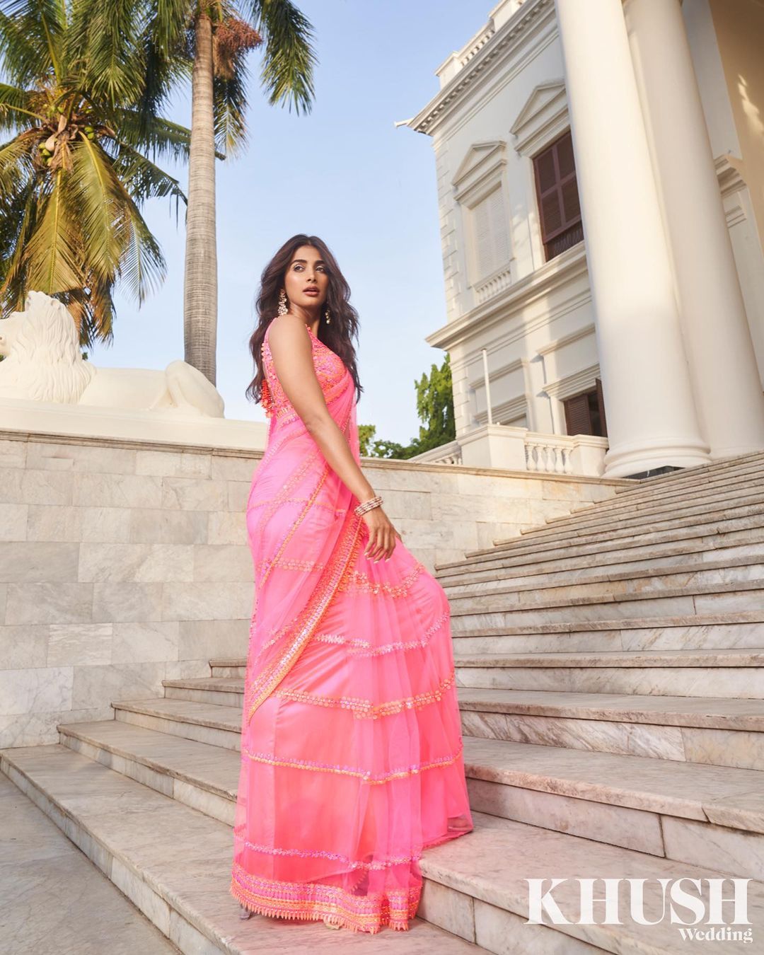 The lovely pooja hegde graced Koti Women's college for a picture session in an imaginative wedding dress, providing fans with a dazzling show. With her ethereal beauty and composure, the bollywood diva, who is renowned for her flawless sense of style, enthralled her audience. pooja posted a stunning collection of images of herself wearing entrancing dresses on Instagram.
