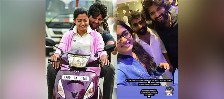 Vijay Deverakonda and rashmika mandanna have a unique relationship. Even though they explicitly stated they are merely close friends, rumours regarding their romance occasionally made news. The most recent instagram story post by rashmika has generated a lot of discussion. With vijay deverakonda and dear comrade director Bharat Kamma, she shared an old photograph. She continued by saying that the movie was really unique and that it had been 4 years since its July 26, 2019, premiere.