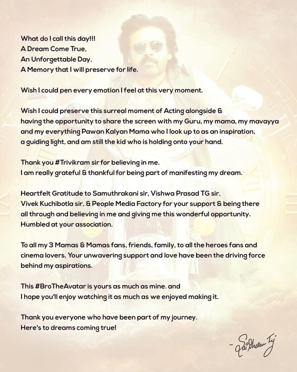 Tej on twitter, tweeted- I will never forget this day, today is the day my dream came true. I will remember this day as a memory for the rest of my life. I will never forget sharing the screen with my uncle who was my mentor. I felt as if I was walking hand in hand like a small child with my uncle who inspired me and guided me many times.