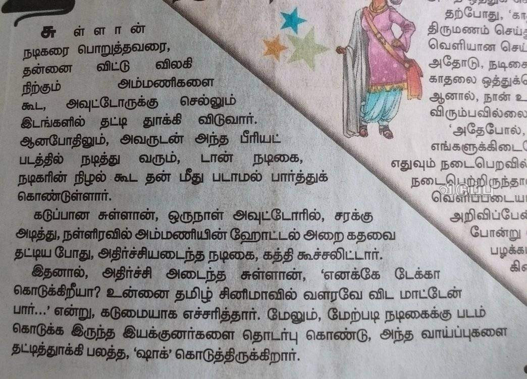 As far as the 'monster' actor is concerned, he would take the ladies who stay away from him and fulfill his lustful desires. But now the 'Doctor' actress, who is acting with him in a period film, tries as much as possible to stay away from the shadow of the actor. Due to this, the actor decided to take her to an outdoor shoot. After the shooting, everyone stayed in their respective hotel rooms. In the middle of the night, the actor went to her room and knocked on her door. Unexpectedly, the actress who opened saw the actor in an inebriated state and she screamed for help.Because of this, the monster actor has warned her that he will not let her sign movies. To prove it, the actor contacted the producers who came to sign movies with her. He completely stopped all the offers coming to the actress right now. This news even came in a tamil magazine as you can read it above.