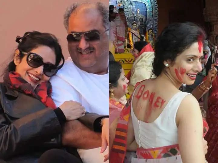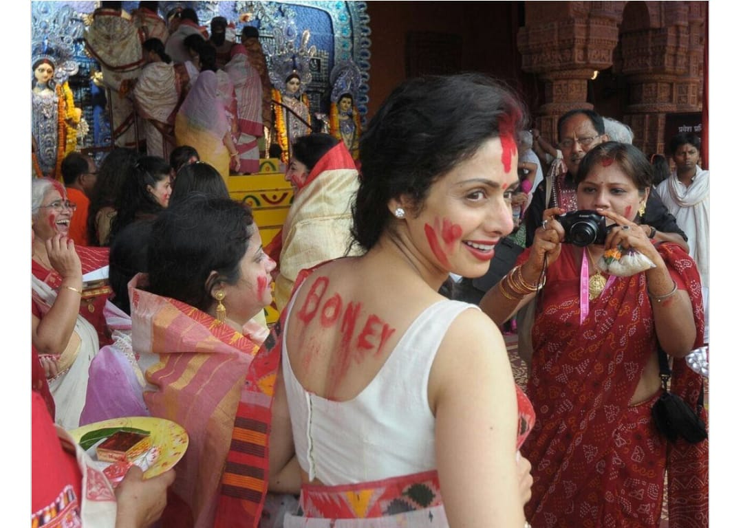 Boney Kapoor himself shared this old photo of sridevi on his Instagram, in which the late actress was seen applying vermilion on her cheeks and back. In this photo, boney was seen written on his back with vermilion. This photo is taken during Sindoor Khela in durga puja festival. Please tell that during Sindoor Khela all married women apply vermilion to each other and play with vermilion.