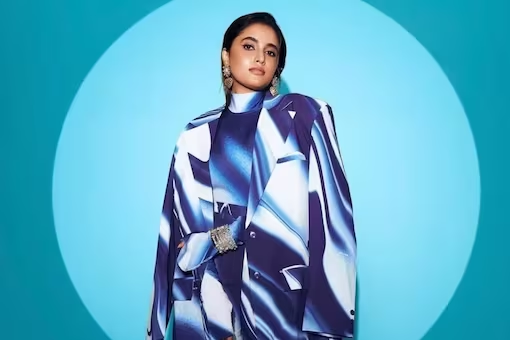 In these photos, priyanka struck a variety of beautiful positions that showed off her exquisite attire. She may be seen donning a chic co-ord ensemble with white embellishments and varied blue hues. The outfit included a full-sleeved blouse with a polo collar and high waist, as well as floor-length trousers with wide legs and functional pockets.