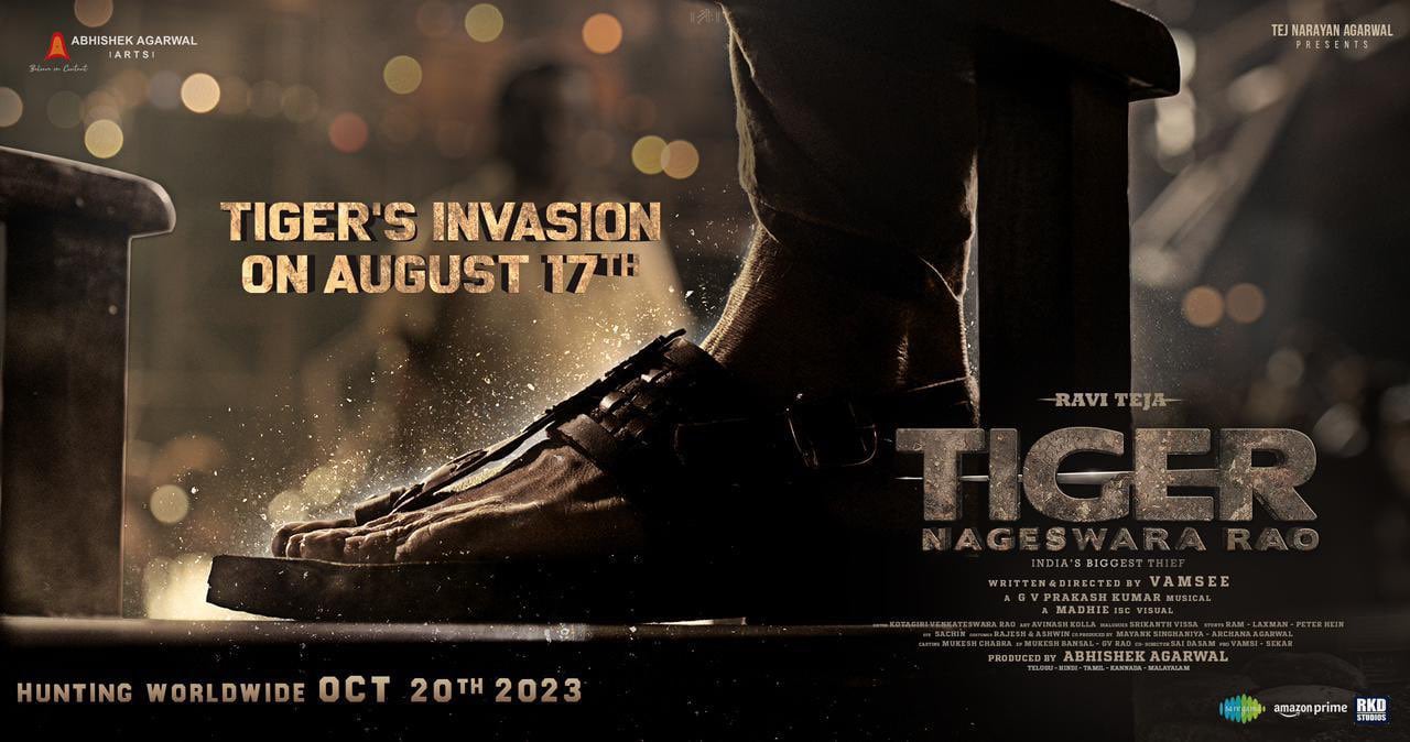 మాస్ మహారాజా రవితేజ ప్రస్తుతం టైగర్ నాగేశ్వరరావు అనే భారీ యాక్షన్ ఎంటర్టైనర్ మూవీ లో హీరోగా నటిస్తున్న విషయం మనకు తెలిసిందే. ఈ మూవీ కి వంశీ దర్శకత్వం వహిస్తున్నాడు. ఇకపోతే ఈ సినిమా షూటింగ్ ప్రారంభం అయ్యి ఇప్పటికే చాలా కాలం అవుతుంది. ఇకపోతే ఇప్పటికే ఈ మూవీ షూటింగ్ చివరి దశకు చేరినట్లు సమాచారం. ఈ మూవీ ని ఈ సంవత్సరం అక్టోబర్ 20 వ తేదీన భారీ ఎత్తున తెలుగు , తమిళ , కన్నడ , మలయాళం , హిందీ భాషలలో విడుదల చేయనున్నారు. ఇకపోతే ఈ మూవీ విడుదల తేదీ దగ్గర పడడంతో ఈ చిత్ర బృందం ఈ సినిమా ప్రమోషన్ లను మొదలు  పెట్టబోతుంది. అందులో భాగంగా తాజాగా ఈ మూవీ బృందం ఈ సినిమాకు సంబంధించిన టీజర్ విడుదల తేదీని అధికారికంగా ప్రకటించింది. ఈ మూవీ యొక్క టీజర్ ను "టైగర్ ఇన్విజన్" పేరుతో ఆగస్టు 17 వ తేదీన విడుదల చేయనున్నారు. ఈ విషయాన్ని ఈ మూవీ మేకర్స్ అధికారికంగా ప్రకటిస్తూ ఒక పోస్టర్ ను కూడా విడుదల చేశారు.