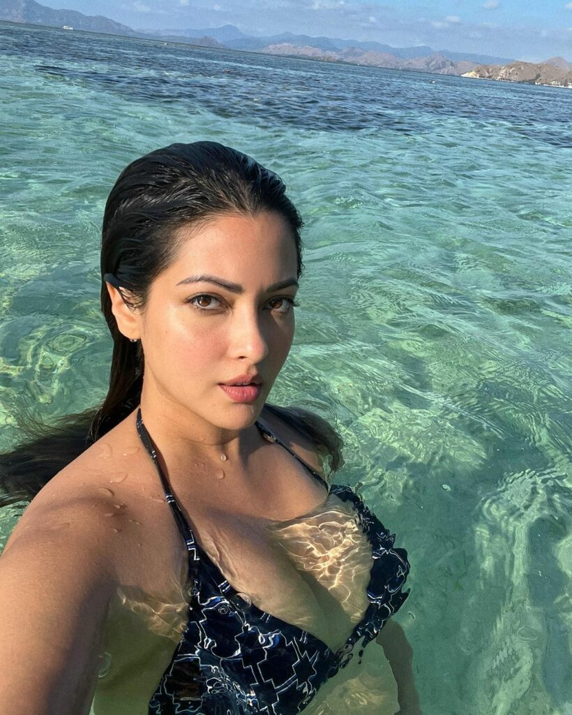 With "Nenu Meeku Telusu," a chapter spanning more than fifteen years, Riya Sen, a 42-year-old enchantress, began her telugu voyage. She poses seductively on the beach in a black bikini, a vision of elegance and charm, as her ageless attractiveness reaches a new peak. Her aquatic ballet shimmers beneath the glistening waves, radiating beauty and mystery. Her seductive selfies give viewers a peek inside her alluring world. Her talents have been featured in telugu, Tamil, Hindi, English, bengali, and Odia films, but she has yet to make a breakthrough.