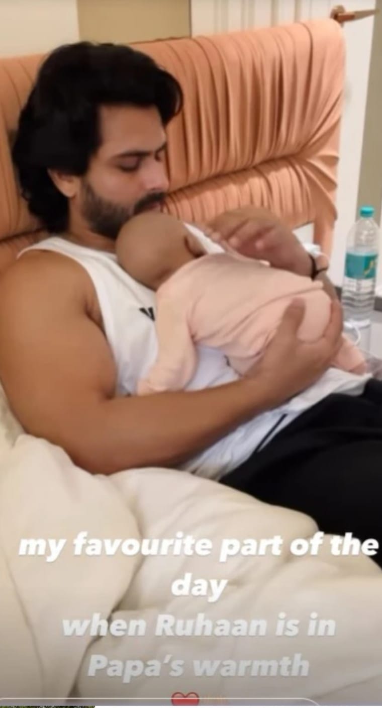 Deepika Kakkar shared a video on her IG handle the previous day. In this lovely video, shoaib ibrahim is seen showering love on his little prince. In the video, Shoaib is looking very handsome in White Curl's half sleeves T-shirt, which he has paired with black pants. Also, what grabbed attention was little Roohan who is seen having a sweet sleep lying on his father's chest. This bonding of father and son was looking very cute.