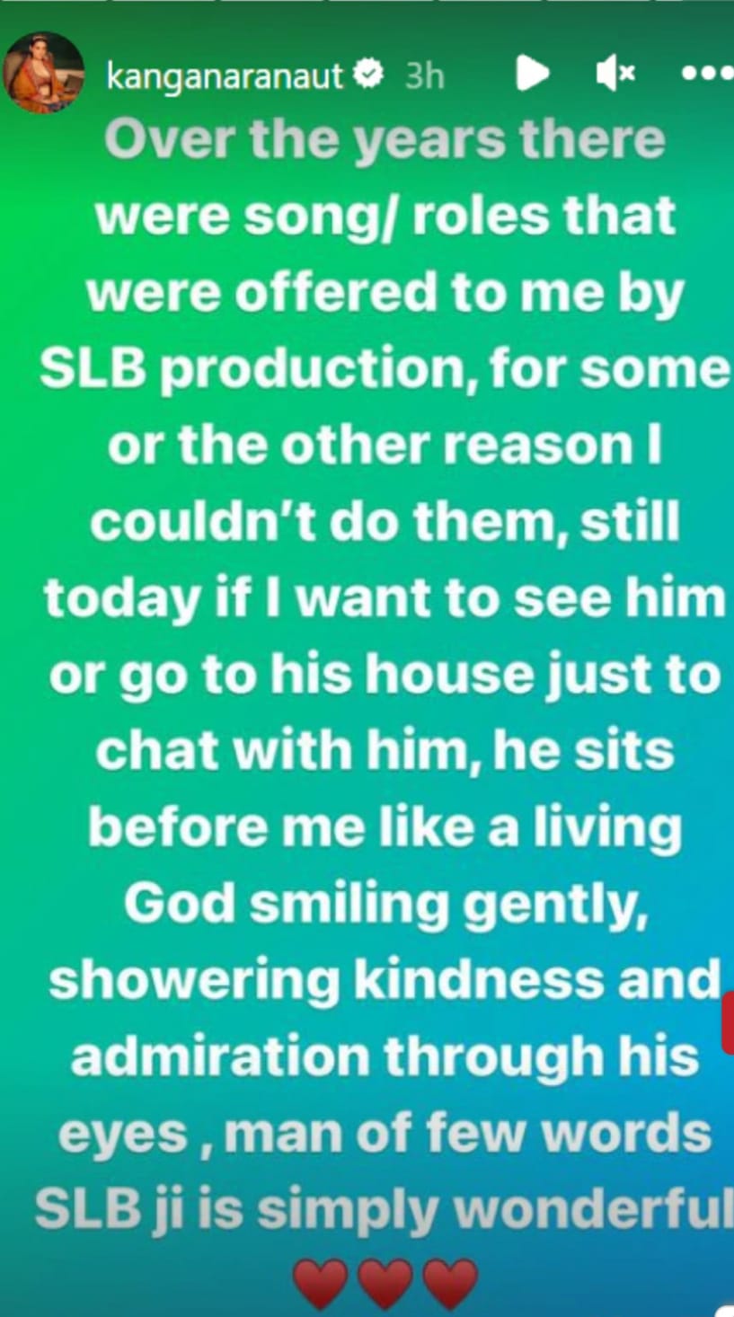 Kangana further wrote – In the last several years, many songs and roles were offered to me by sanjay leela bhansali production, but due to some reasons, I could not do it. Even now when I go to his house to meet him, he sits and talks with me. Smiling softly like a god, with his eyes showering kindness and praise, the soft-spoken SLB ji is wonderful.