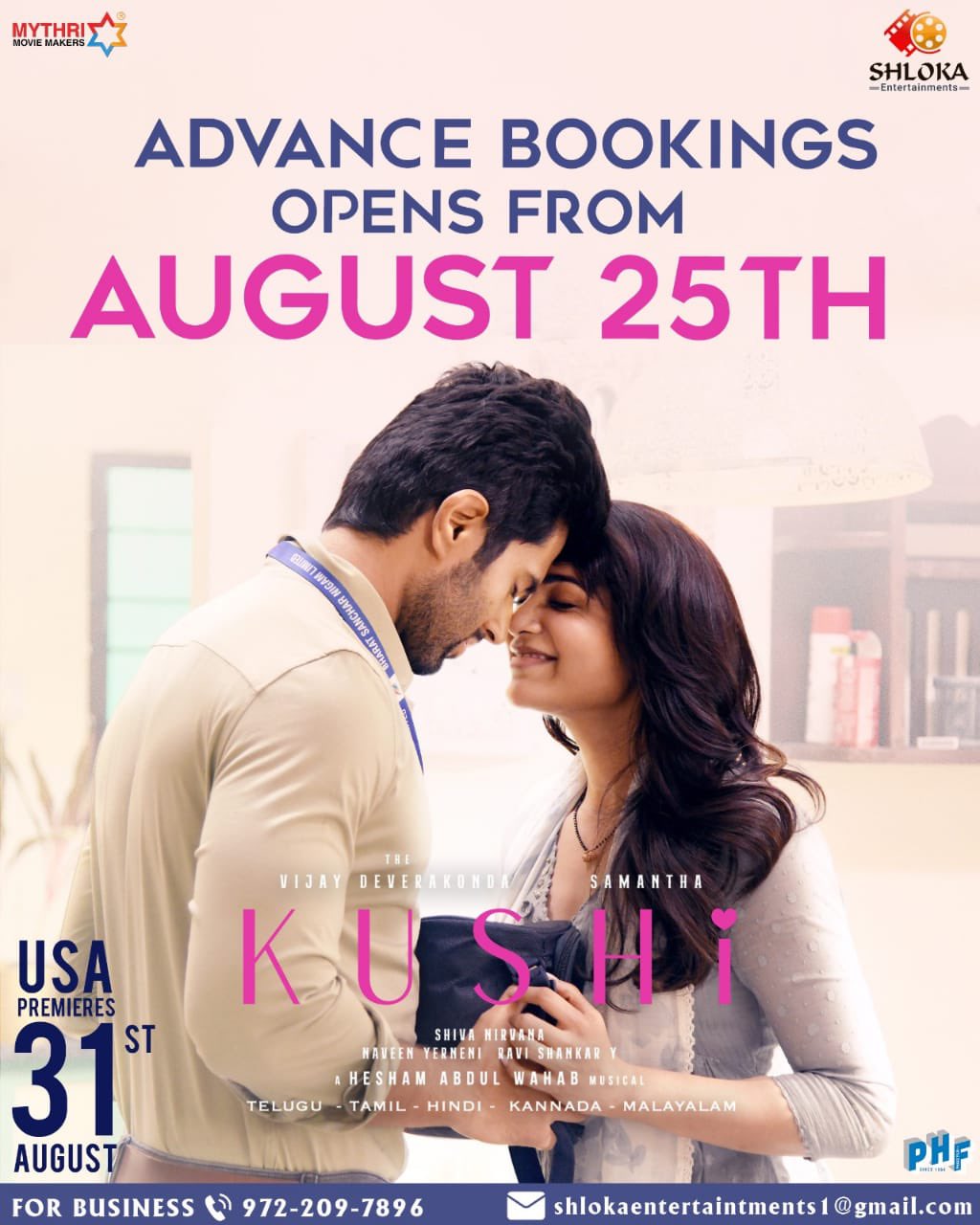 టాలీవుడ్ యువ నటుడు విజయ్ దేవరకొండ ఆఖరుగా లైగర్ అనే మూవీ తో ప్రేక్షకులను పలకరించాడు. భారీ అంచనాల నడుమ తెలుగు , తమిళ , కన్నడ , హిందీ , మలయాళ  భాషలలో విడుదల అయిన ఈ సినిమా బాక్స్ ఆఫీస్ దగ్గర ఘోర పరాజయాన్ని ఎదుర్కొని భారీ నష్టాలను చవి చూసింది. ఇకపోతే లైగర్ లాంటి భారీ డిజాస్టర్ తర్వాత ఈ యువ నటుడు ఖుషి అనే లవ్ రొమాంటిక్ ఎంటర్టైర్ మూవీ.తో ప్రేక్షకుల ముందుకు రాబోతున్నాడు. ఈ మూవీ.లో మోస్ట్ బ్యూటిఫుల్ అండ్ మోస్ట్ టాలెంటెడ్ నటిమని సమంత హీరోయిన్ గా నటించగా ... శివ నర్వాన ఈ మూవీ కి దర్శకత్వం వహించాడు. మైత్రి సంస్థ వారు ఈ మూవీ ని నిర్మించారు. ఇకపోతే ఈ సినిమాను సెప్టెంబర్ 1 వ తేదీన భారీ ఎత్తున తెలుగు , తమిళ , కన్నడ , మలయాళం ,  హిందీ భాషలలో విడుదల చేయనున్నారు.