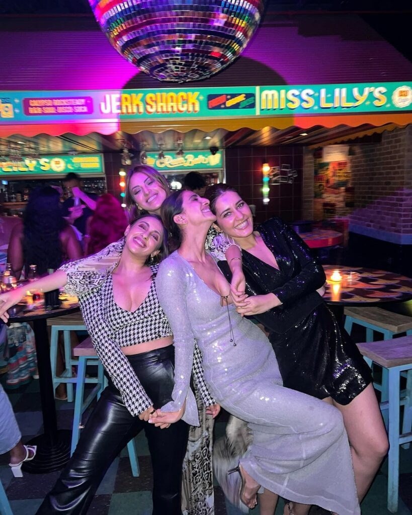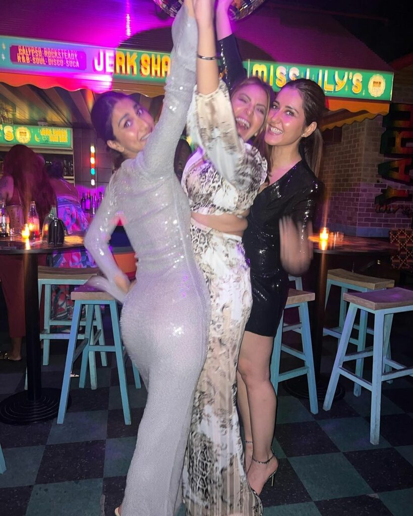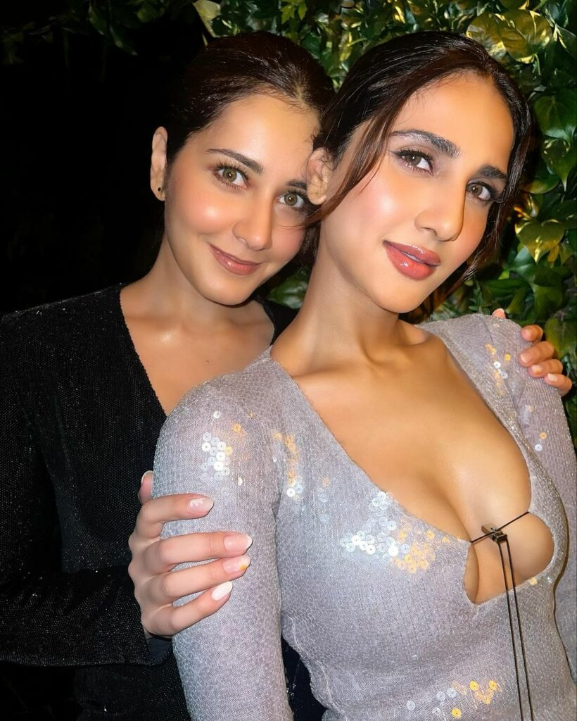 The focus is on Raashi Khanna today as she releases a stunning collection of images documenting Vaani Kapoor's 35th birthday party in the energetic setting of Sushi Samba restaurant in Dubai. Vaani oozes elegance in a sparkling white attire, while Raashi dazzles in a low-necked black shimmering dress. Both women are dressed resplendently. Their attractiveness is enhanced by their glossy cosmetics, which heightens the celebration's shine. The couple engages in funny poses while dancing and having a good time. They are clearly enjoying their time together.